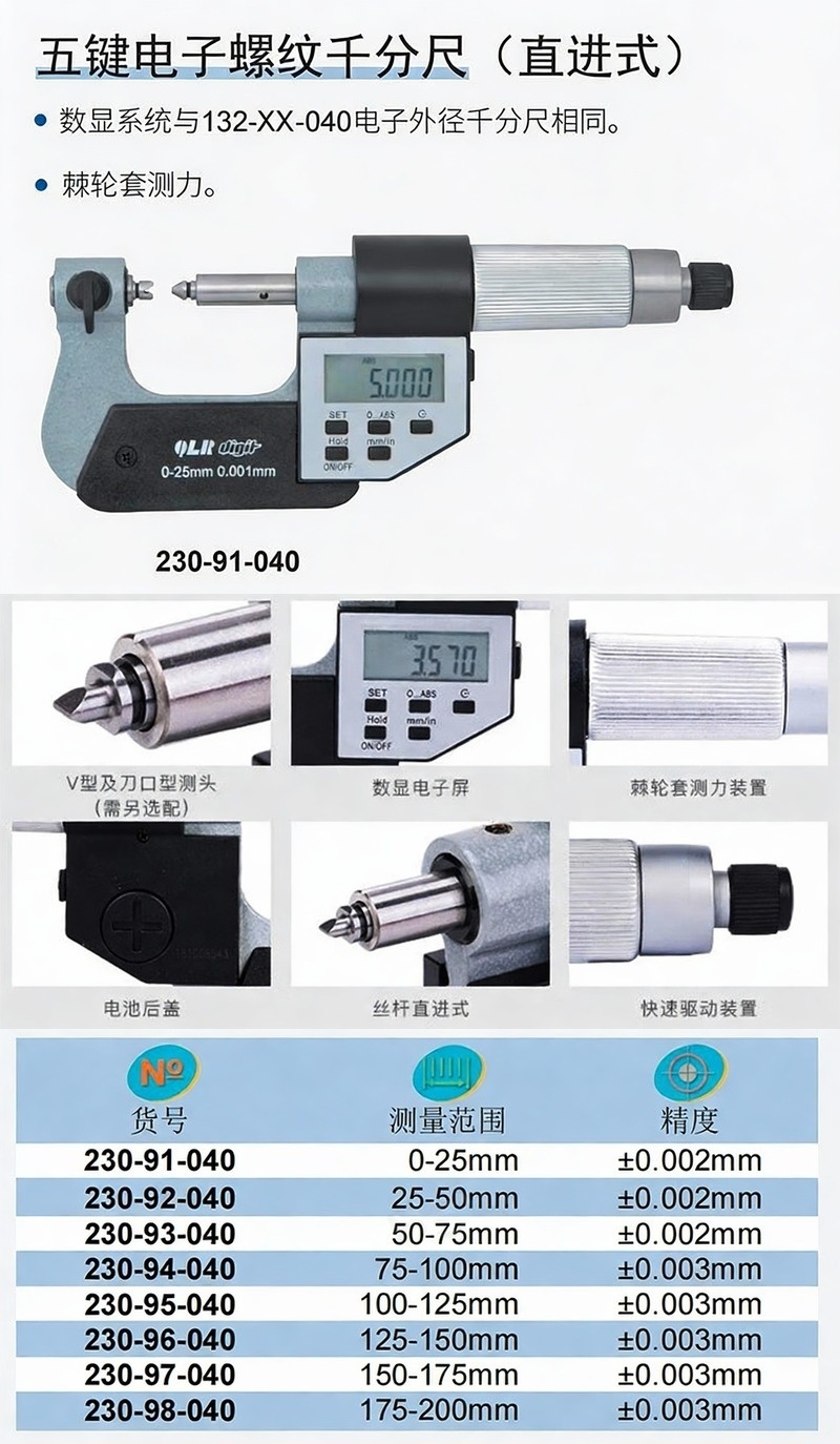 XIBEI(西北) 青量电子叶片千分尺 B型(0.4) 235-01-040 0~25mm 不代为第三方检测 1把