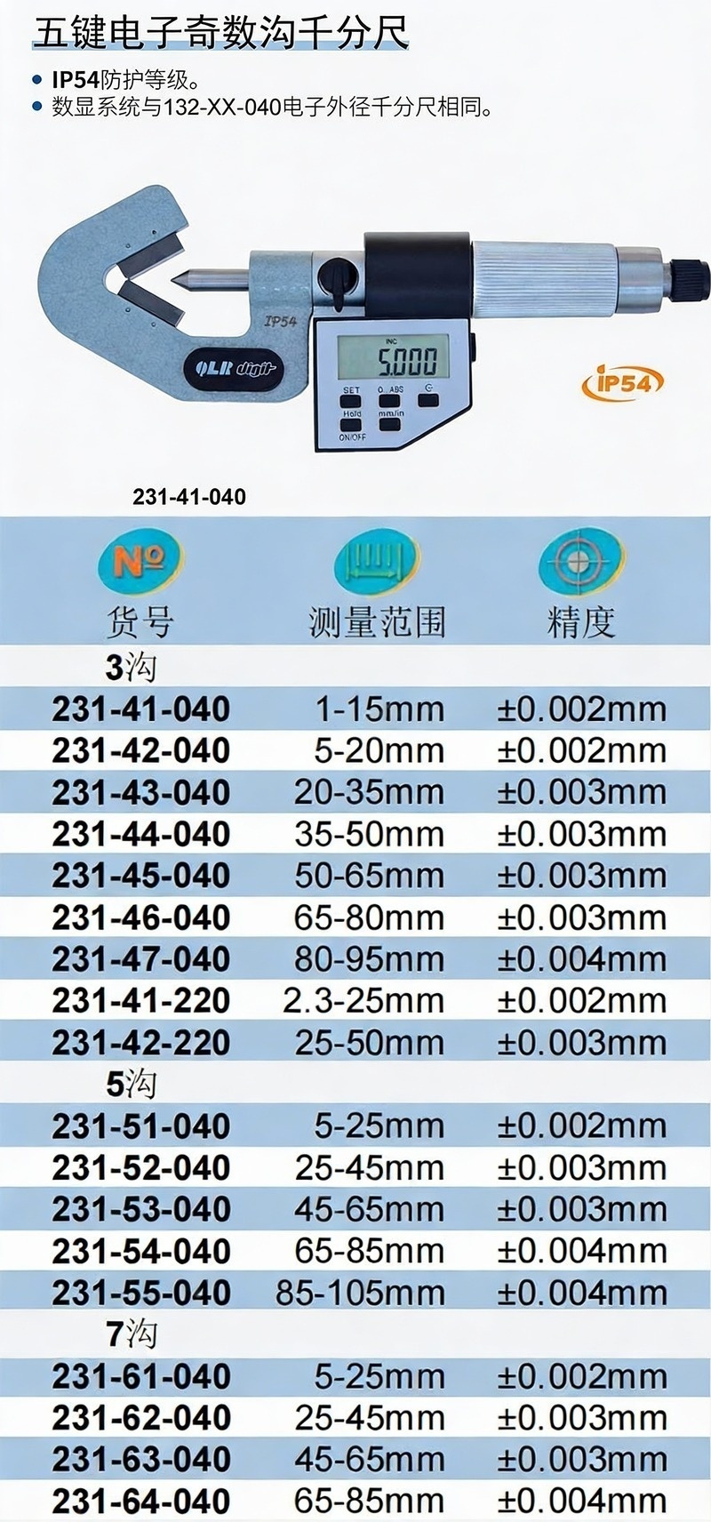 XIBEI(西北) 青量电子三沟千分尺 231-42-040 5~20mm 不代为第三方检测 1把