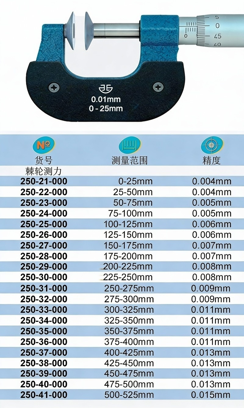 XIBEI(西北) 青量公法线千分尺,250-22-000 25-50*0.01mm、直进式 售卖规格:1把