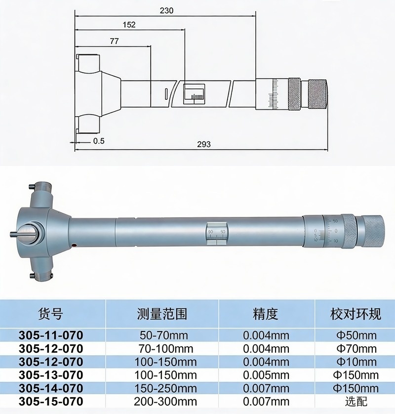 XIBEI(西北) 青量三点内径千分尺,305-11-070 50-70*0.001mm、配校对环规 售卖规格:1把