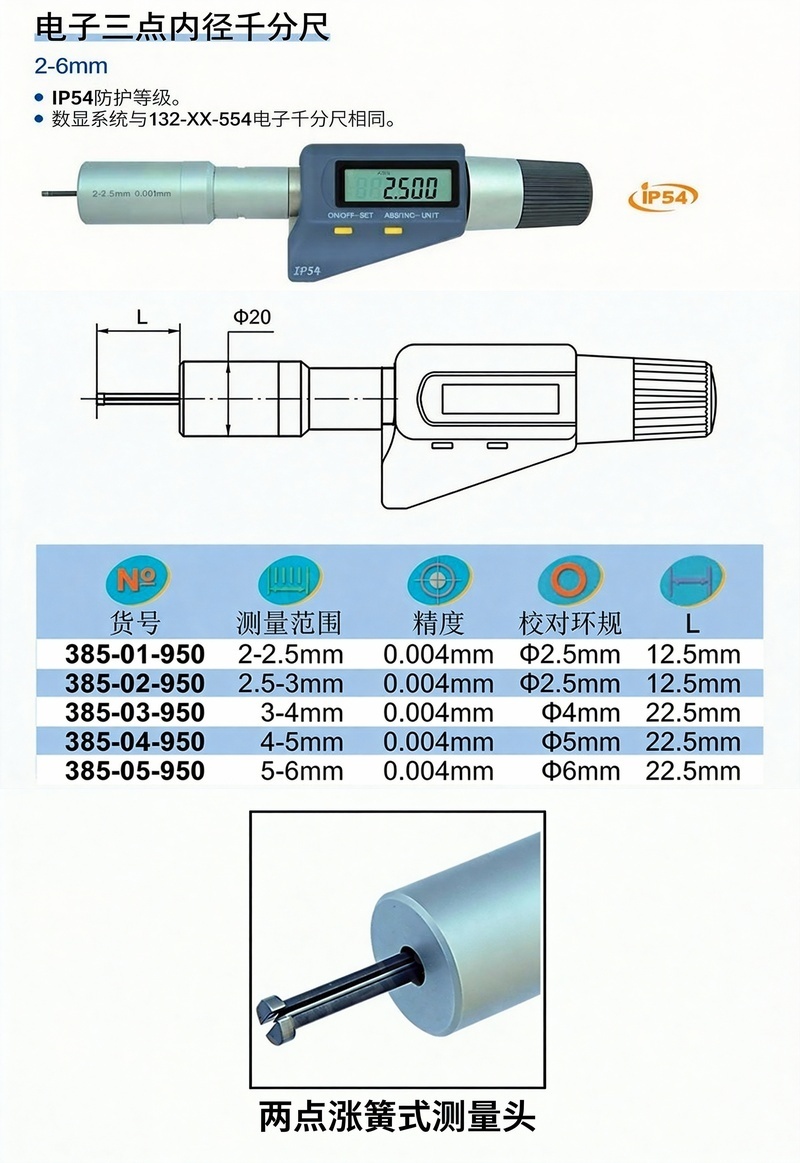 XIBEI(西北) 青量数显两点内径千分尺,385-02-950 2.5-3*0.001mm、配校对环规、IP54 售卖规格:1把