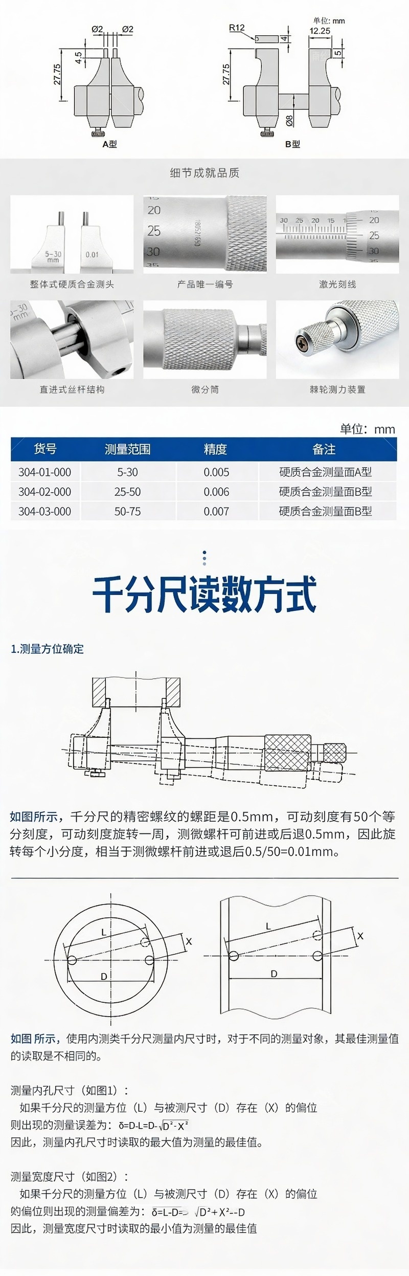 XIBEI(西北) 青量内测千分尺,304-01-000 5-30mm、不含第三方检测 售卖规格:1把