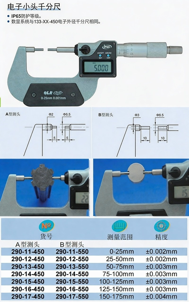 XIBEI(西北) 青量数显叶片千分尺,295-15-450 100-125*0.001mm、A型(0.75*6.5*6)、电子/刻度显示、IP65 售卖规格:1把