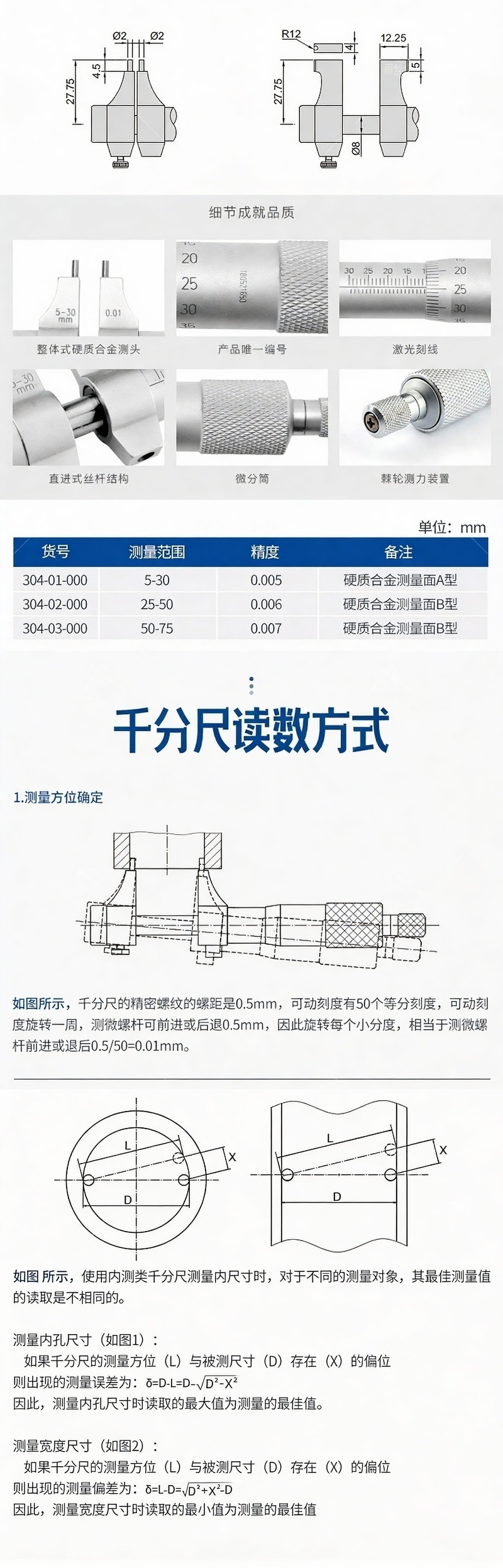 XIBEI(西北) 青量内径千分尺-卡尺型 304-01-000 卡尺型 5~30mm 不代为第三方检测 1把