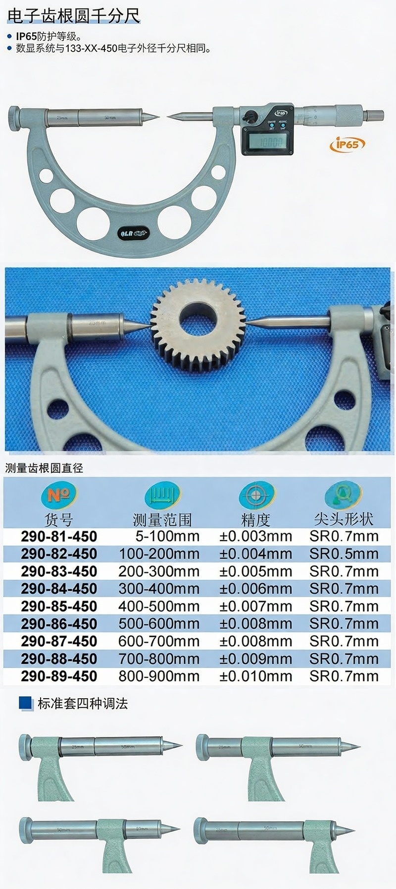 XIBEI(西北) 青量电子齿轮千分尺 297-14-450 75~100mm 不带测头 不代为第三方计量检测 1把