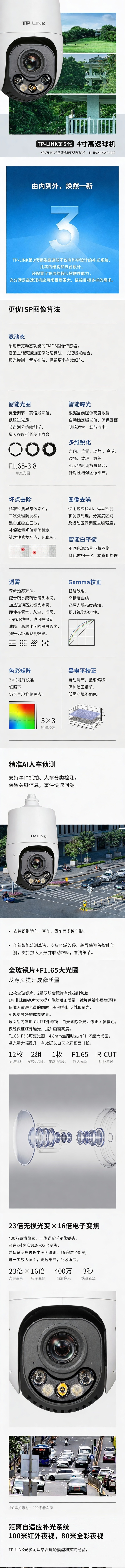 普联/TP-LINK 400万4寸23倍双光警戒高速球机,TL-IPC4423XP-ADC 焦距:4.8mm-110mm,DC/POE供电 1个