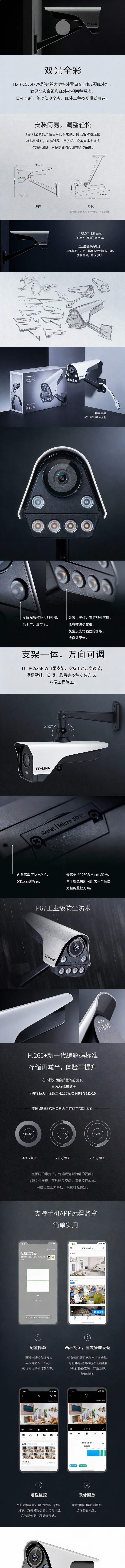 普联/TP-LINK 300万全彩枪机,TL-IPC536F-W6 全彩/红外夜视50米 内置拾音 可插卡 6mm焦距 1台