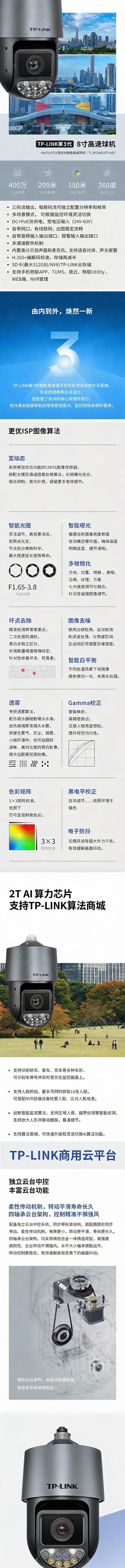 普联/TP-LINK 400万8寸23倍双光智能警戒高速球机,TL-IPC8423TP-ADC 焦距:4.8mm-110mm,DC/POE供电 1个