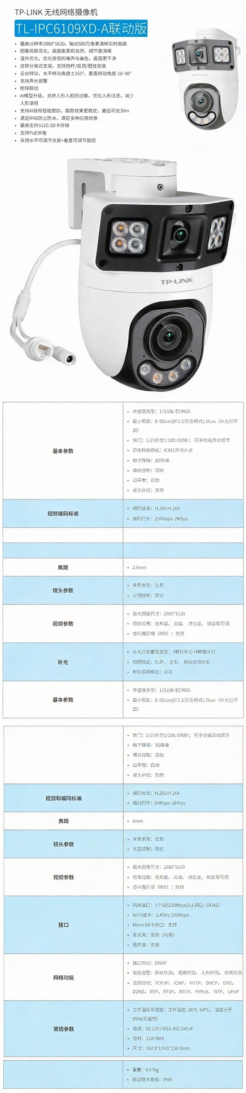 普联/TP-LINK 双路500万枪球联动全彩室外球机,TL-IPC6109XD-A联动版 焦距:2.8mm,DC/POE供电(标配无电源) 1个
