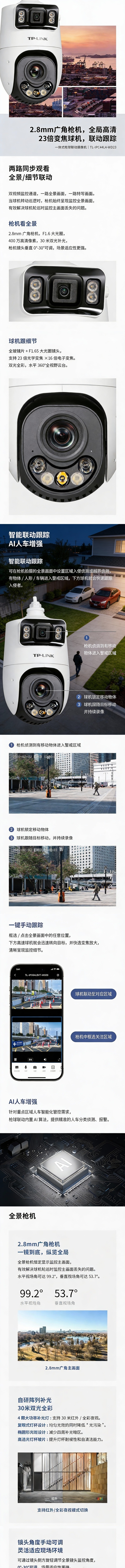 普联/TP-LINK 双目400万4寸23倍双光枪球联动高速球机,TL-IPC44L4-WD23 焦距:枪机2.8mm;球机4.8mm-110mm,DC供电 1个