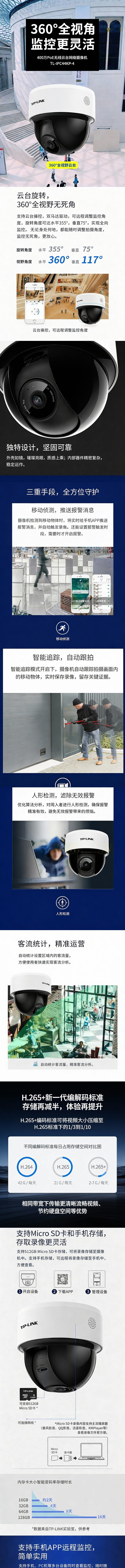 普联/TP-LINK 400万PoE云台半球网络摄像机,TL-IPC44KP-4 焦距:4mm,DC/POE供电(标配无电源) 1个
