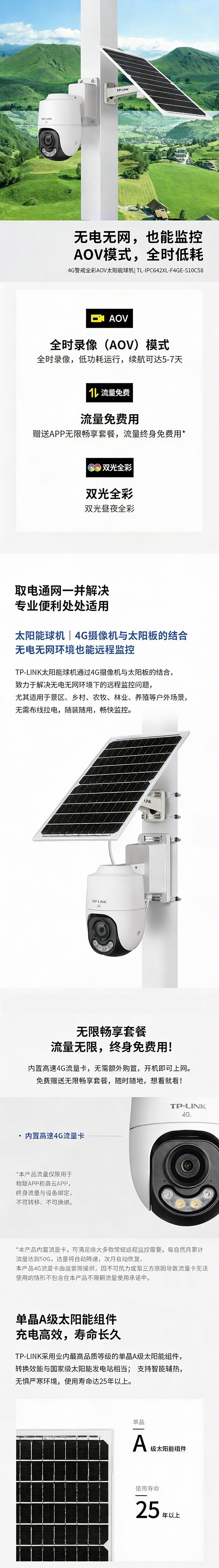 普联/TP-LINK 400万4G(终身流量/AOV低功耗/全彩)警戒辅热版太阳能球机,TL-IPC642XL-F4GE-S10C58 焦距:4mm 1个