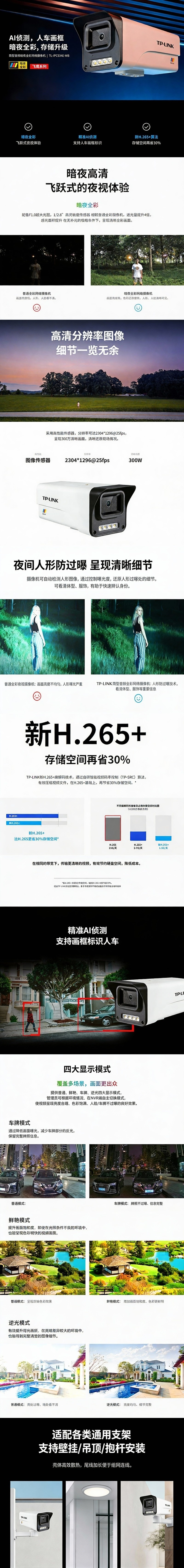 普联/TP-LINK 300万H.265拾音暗夜全彩筒形摄像机,TL-IPC534E-WB6 DC供电 1个