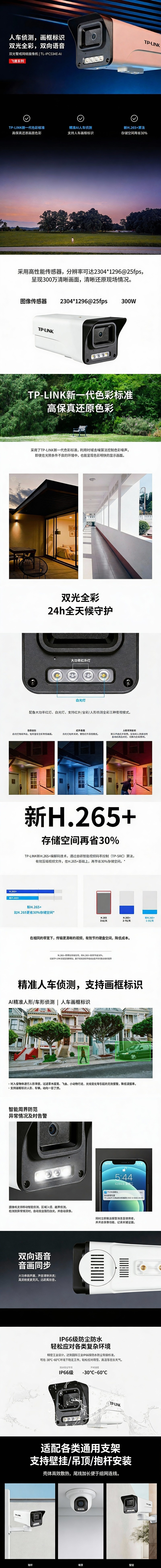 普联/TP-LINK 300万H.265双光警戒双向语音筒形摄像机,TL-IPC534E-AI4 DC供电 1个