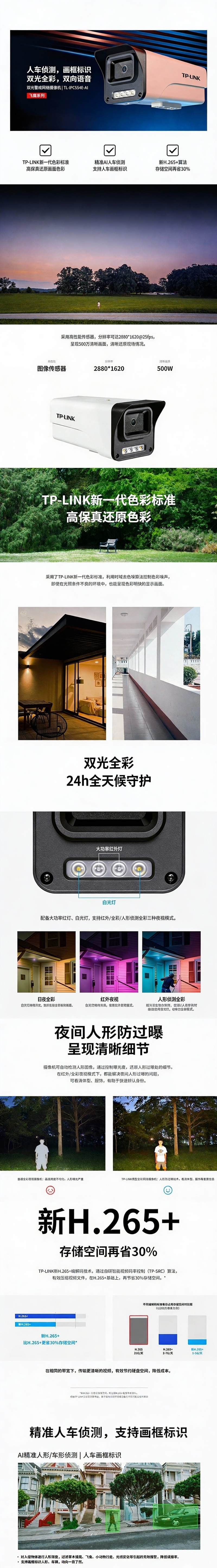 普联/TP-LINK 500万H.265双光警戒双向语音筒形摄像机,TL-IPC554E-AI4 DC供电 1个
