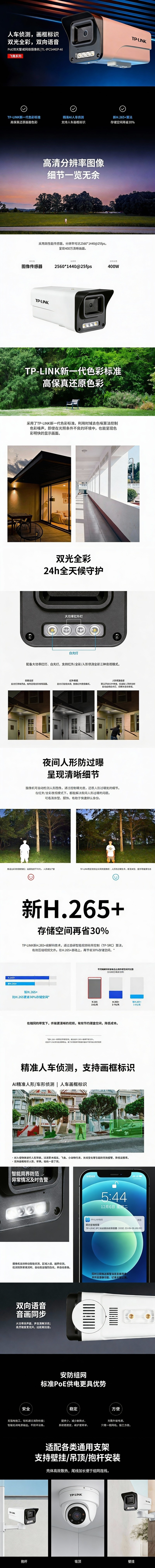 普联/TP-LINK 400万H.265双光警戒双向语音筒形摄像机,TL-IPC544EP-AI4 POE供电 1个