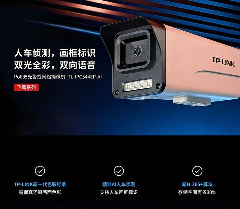 普联/TP-LINK 400万H.265双光警戒双向语音筒形摄像机,TL-IPC544EP-AI6 POE供电 1个