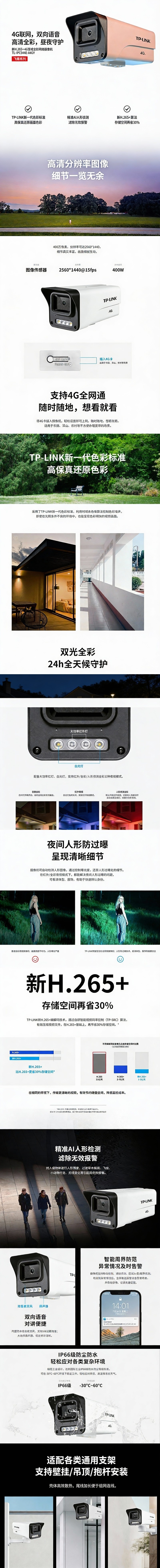 普联/TP-LINK 400万H.265 4G警戒全彩筒形摄像机,TL-IPC544E-A4GY 1个