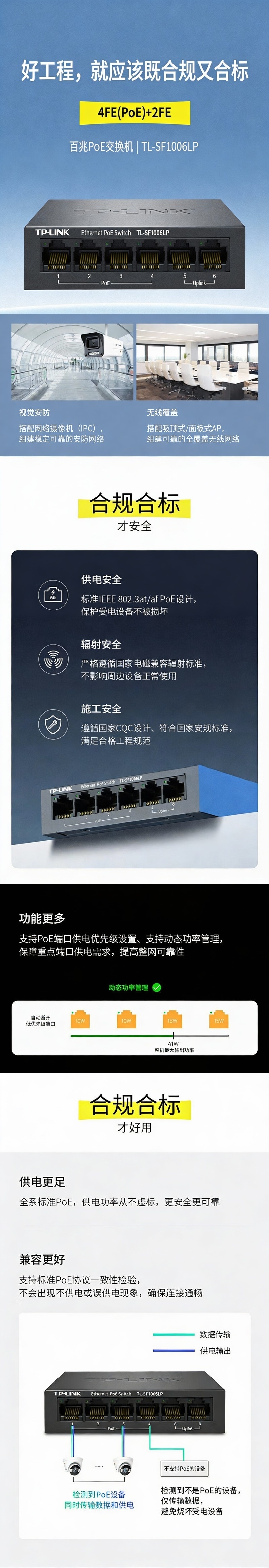 普联/TP-LINK POE交换机,TL-SF1006LP 6口百兆POE交换机 1台