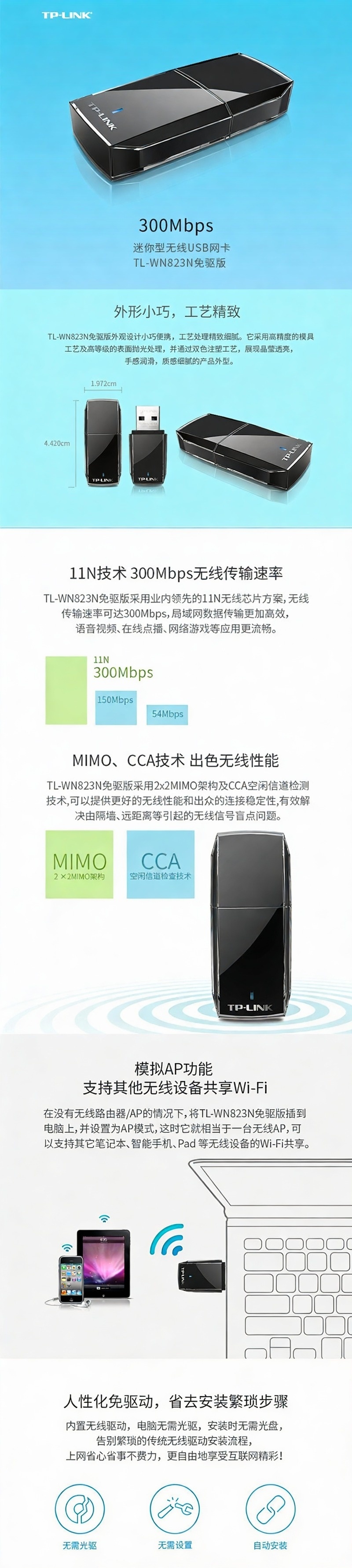 普联/TP-LINK 无线网卡,TL-WN823N免驱版 USB无线网卡免驱动 1个