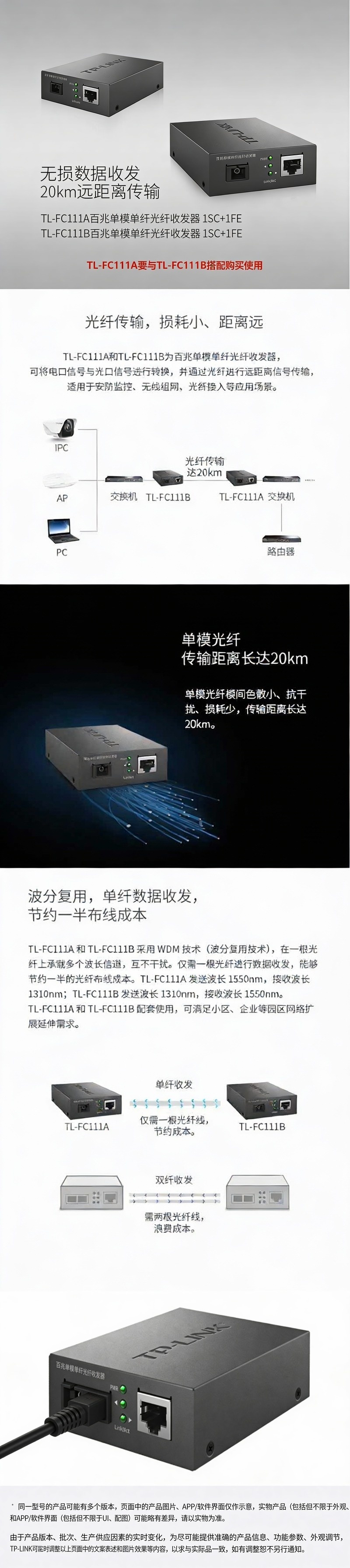 普联/TP-LINK 百兆单模单纤光纤收发器,TL-FC111A TL-FC111A需与TL-FC111B配对 1个