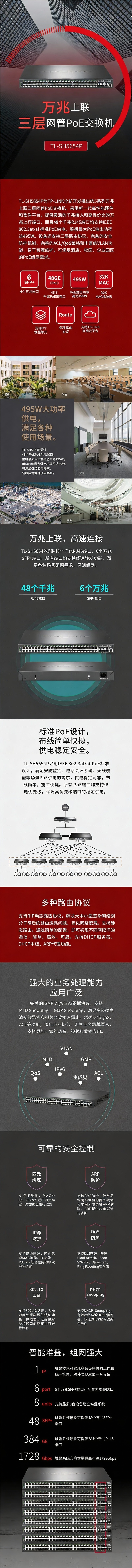 普联/TP-LINK POE交换机,TL-SH5654P 48*GE+4*10G SFP+万兆上联三层网管PoE交换机 1台
