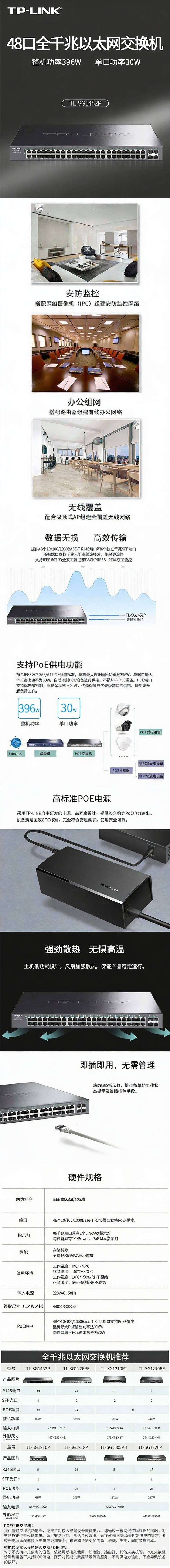 普联/TP-LINK 交换机,TL-SG1452P 48口全千兆POE网络交换机 1台