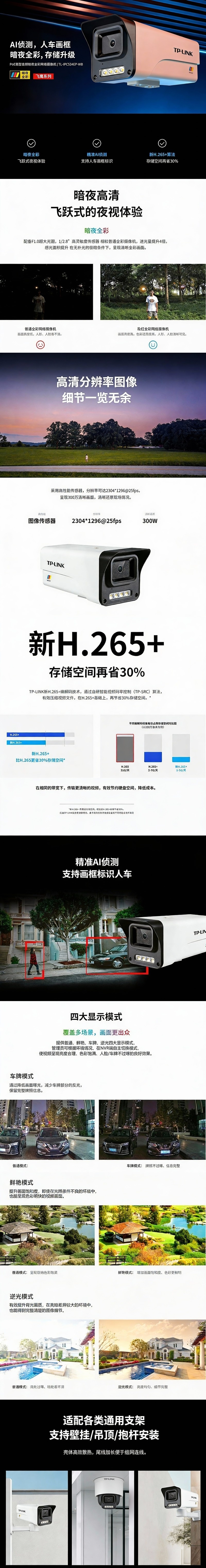 普联/TP-LINK 300万H.265拾音暗夜全彩筒形摄像机,TL-IPC534EP-WB6 POE供电 1个