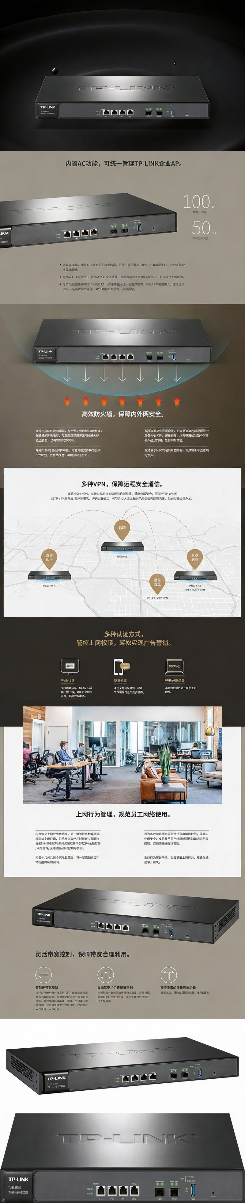普联/TP-LINK 企业级路由器,TL-ER6120T 万兆企业VPN路由器 1台