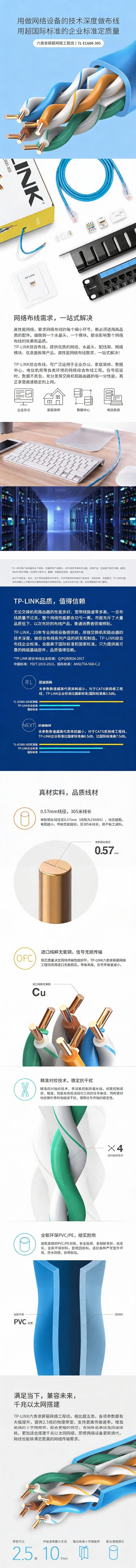 普联/TP-LINK 六类非屏蔽网络工程线,TL-EC600-305(蓝) 305米/件