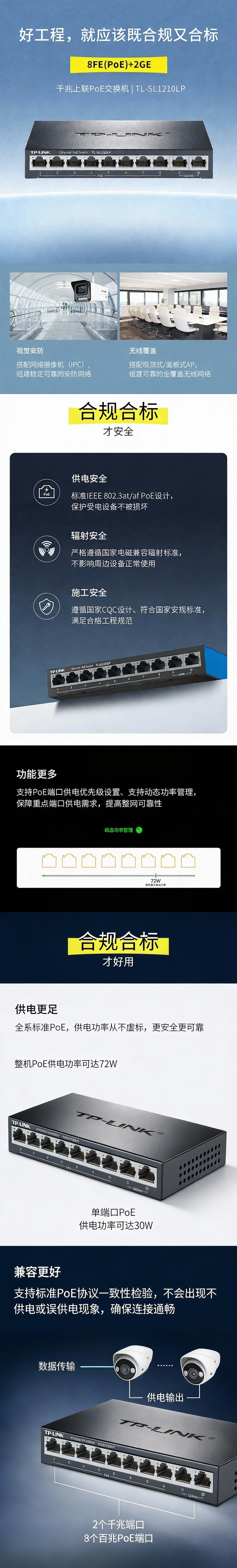 普联/TP-LINK POE交换机,TL- SL1210LP 10口千兆上联POE交换机 1台