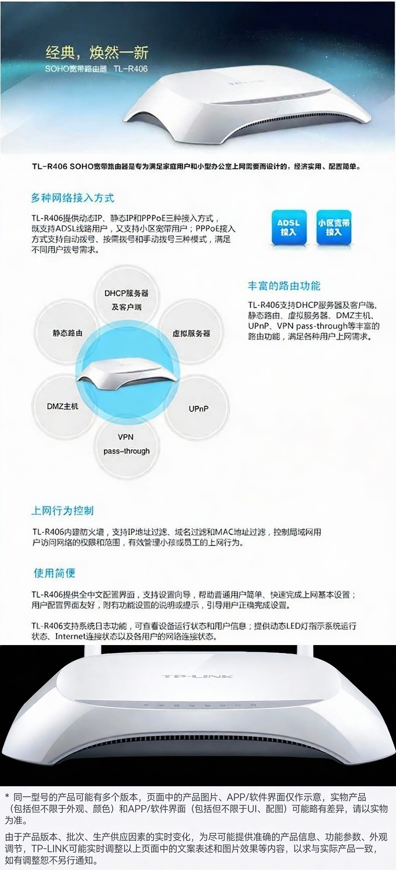 普联/TP-LINK 路由器,TL-R406 SOHO宽带有线路由器 1个