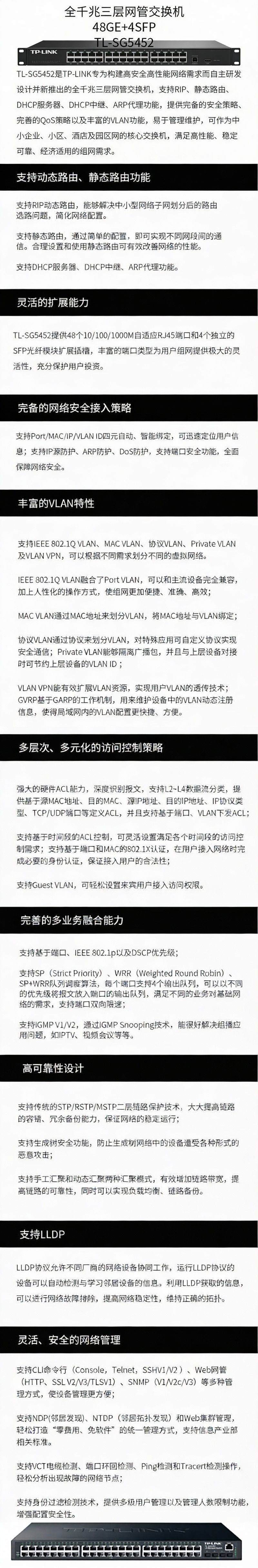 普联/TP-LINK 交换机,TL-SG5452 48GE+4SFP 全千兆三层网管交换机 标准机架 1台