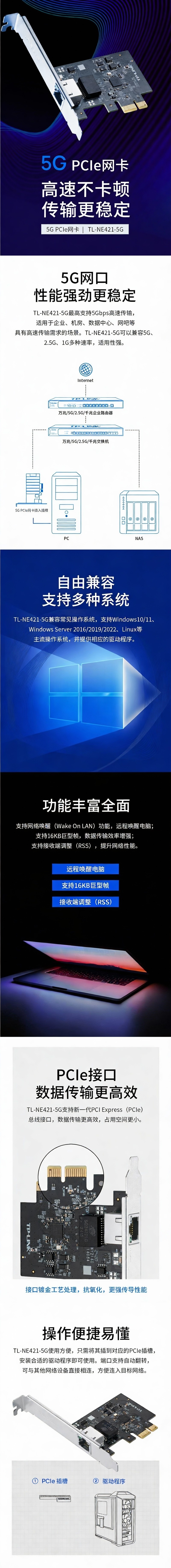普联/TP-LINK 有线网卡,TL-NE421-5G 5G速率 PCIe网卡 1台