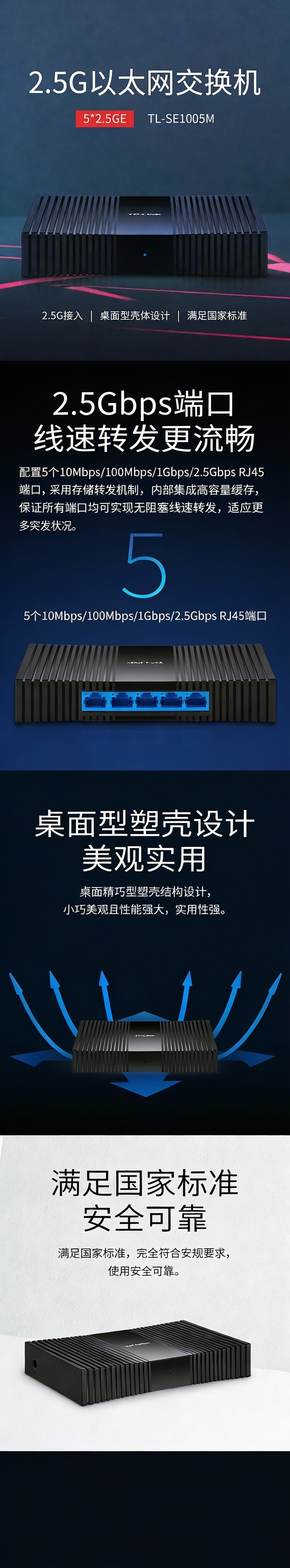 普联/TP-LINK 交换机,TL-SE1005M 2.5G以太网5口交换机(塑壳) 1台