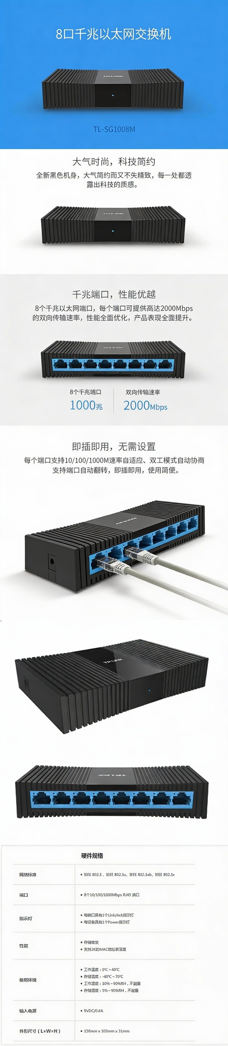 普联/TP-LINK 交换机,TL-SG1008M 8口千兆交换机 1个