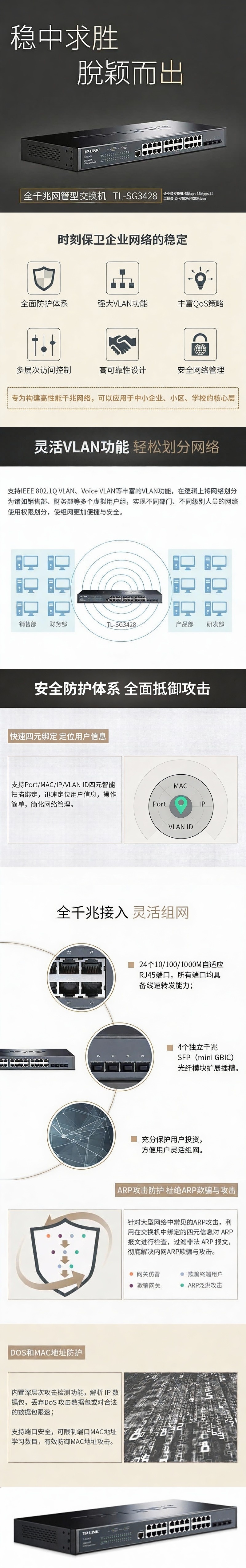 普联/TP-LINK 交换机,TL-SG3428 24口千兆+4个千兆光纤口 1个