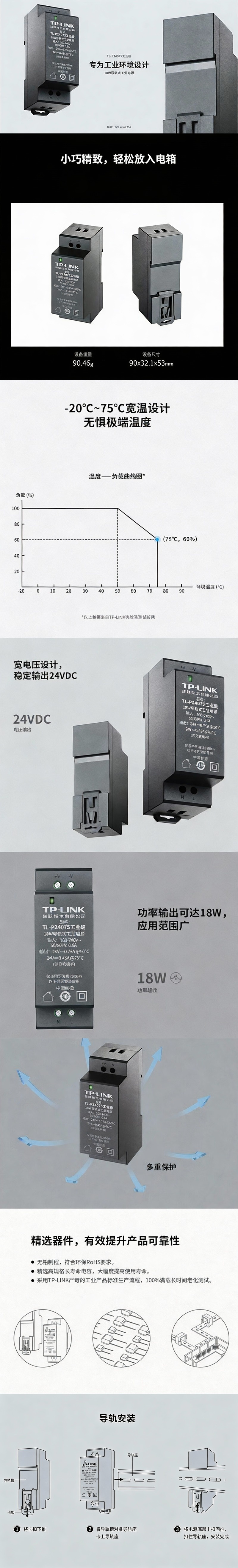 普联/TP-LINK 电源适配器,TL-P24075工业级 18W导轨式工业电源 1台