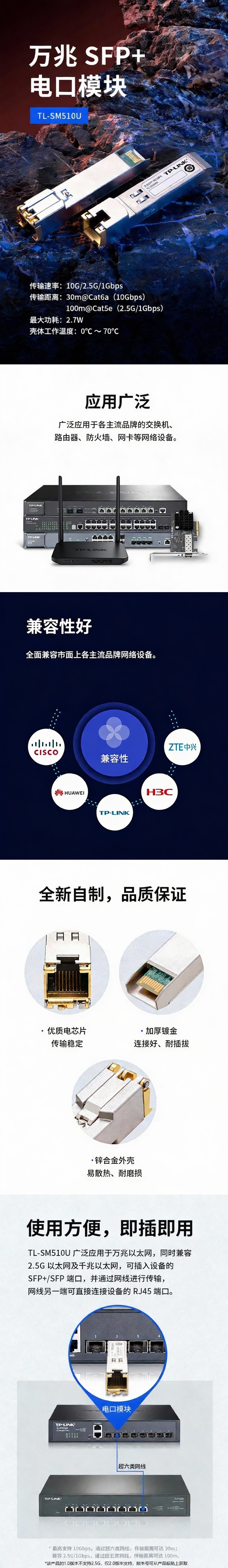 普联/TP-LINK 光纤模块,TL-SM510U 万兆SFP+电口模块 1台