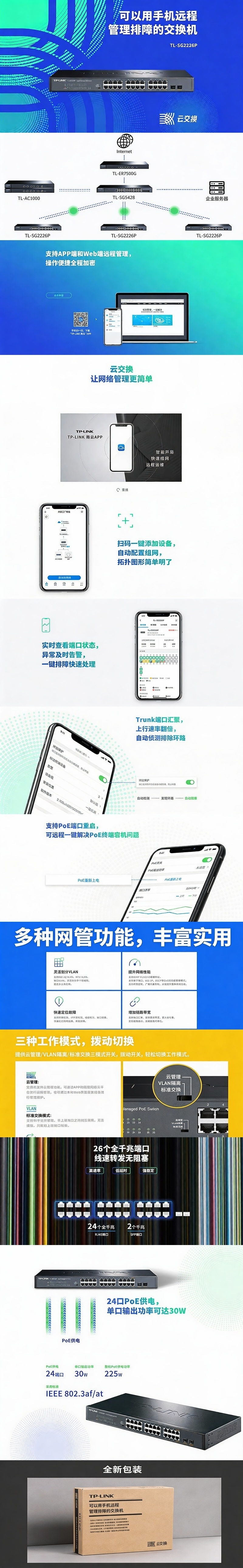 普联/TP-LINK 交换机,TL-SG2226P 全千兆26口Web网管 云管理PoE交换机 (24PoE口+2千兆SFP) 1台