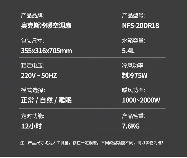 奥克斯空调扇冷暖两用型家用冷风扇移动冷风机NFS-20DR18