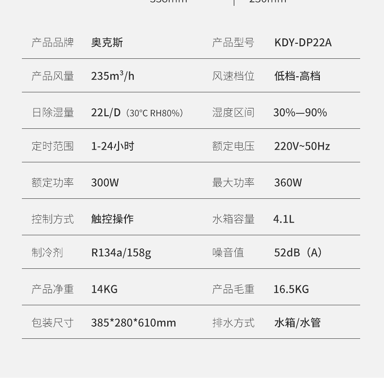 奥克斯 除湿机 KDY-DP22A 日除湿量 22L