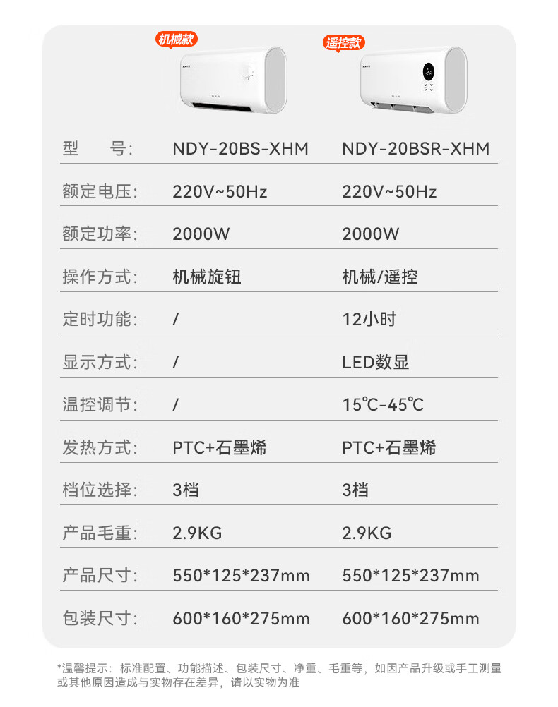 奥克斯 壁挂式电暖器 NDY-20BSR-XHM