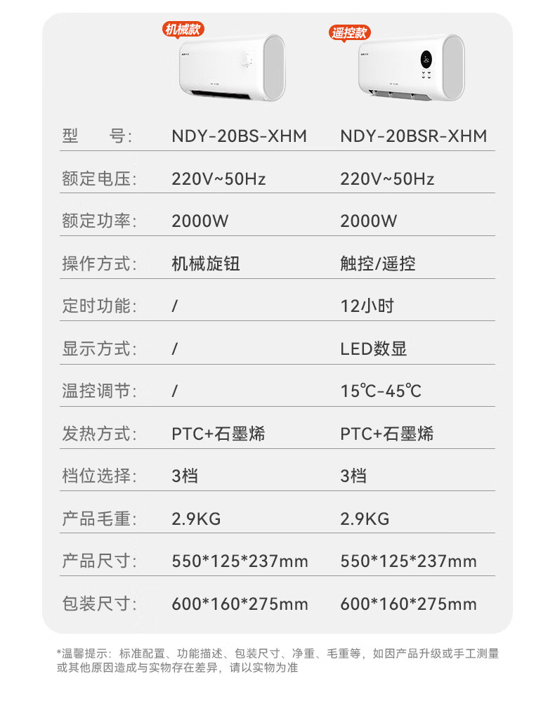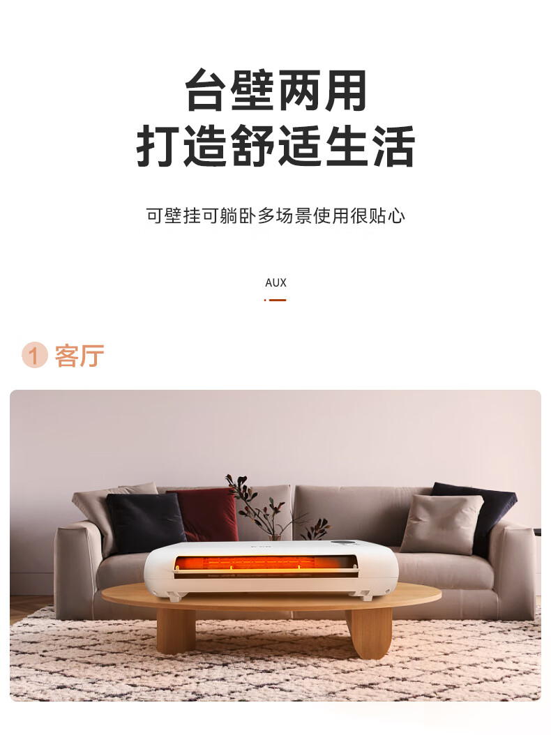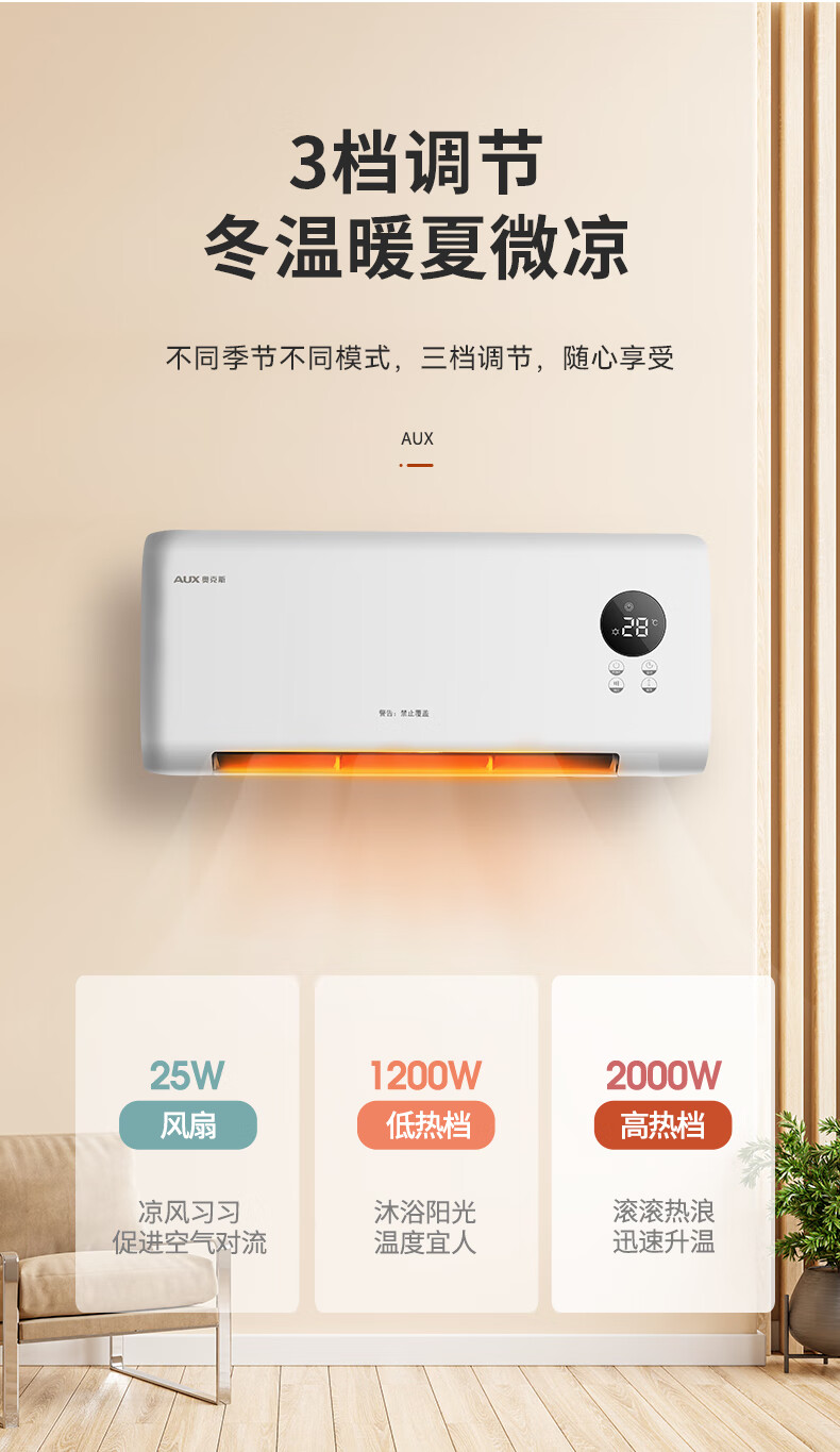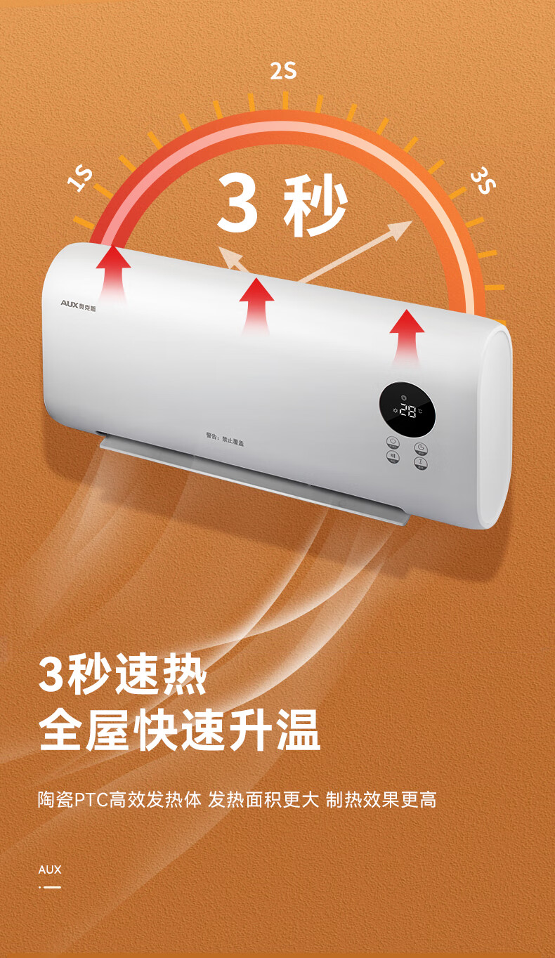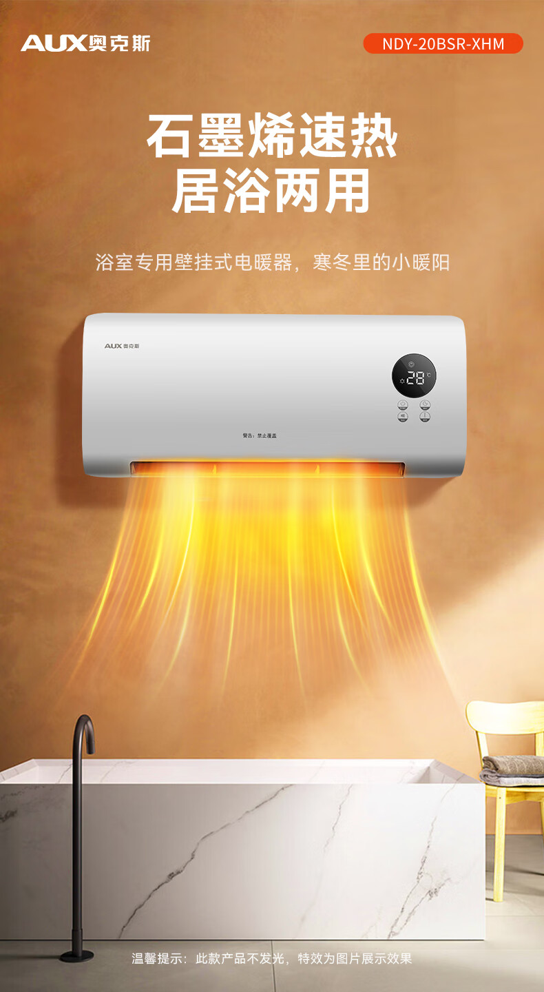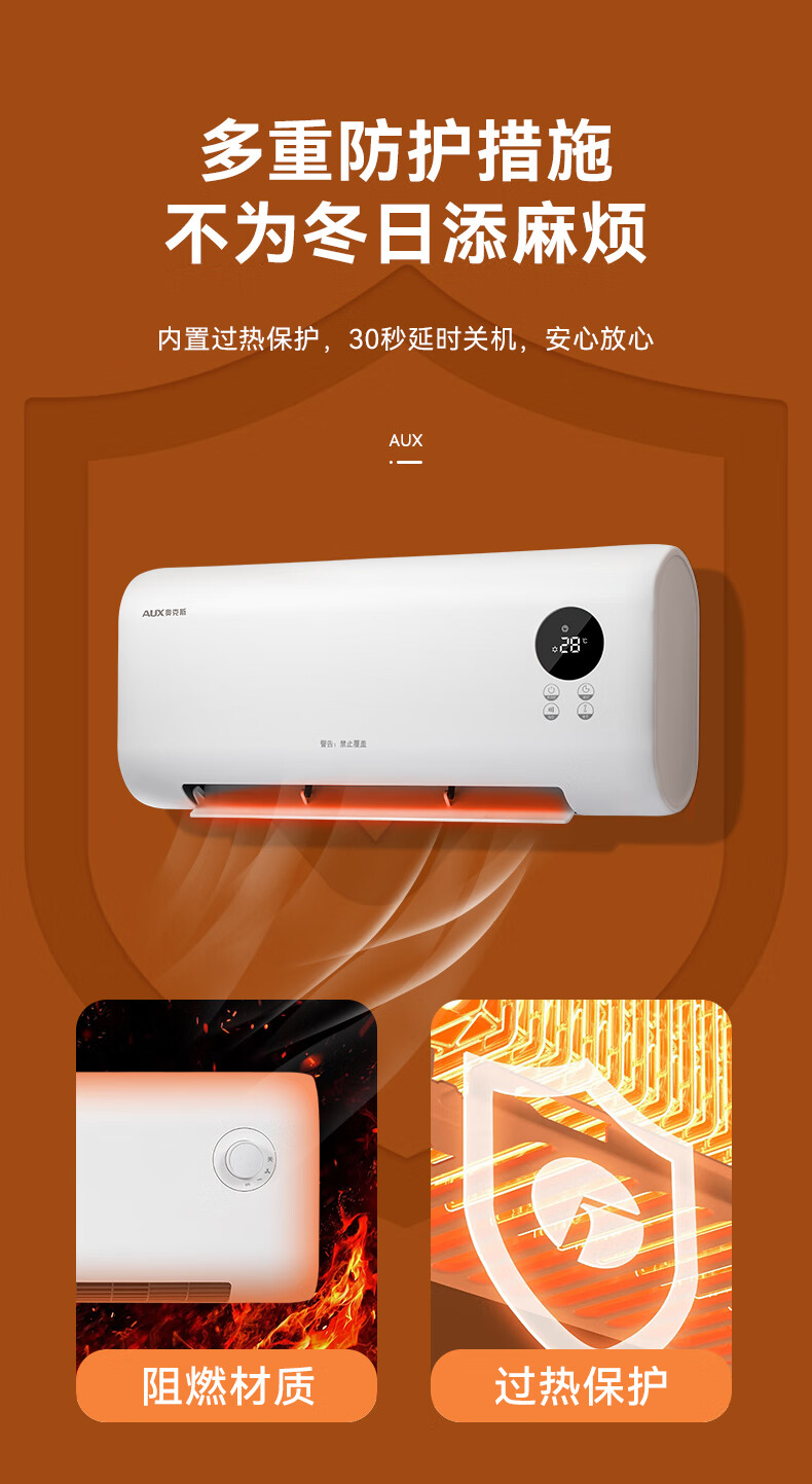 奥克斯(AUX)家用壁挂式取暖器 电暖器 20BSR-XHM