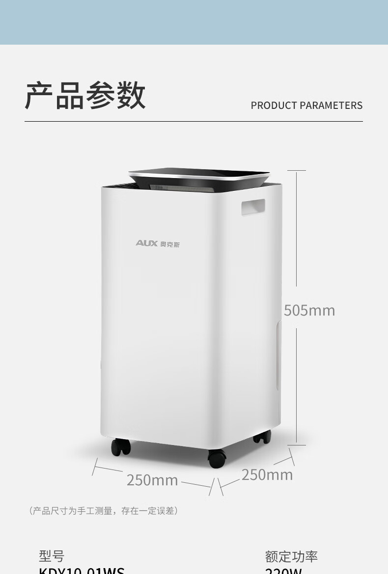 奥克斯 除湿机 KDY-01WS 日除湿量 10L