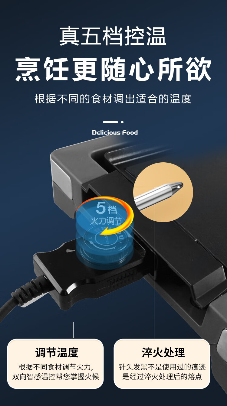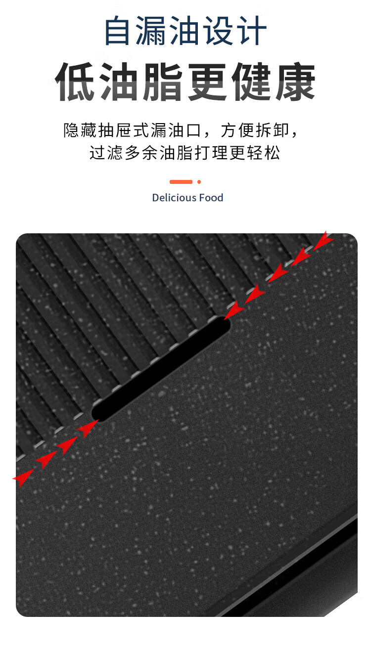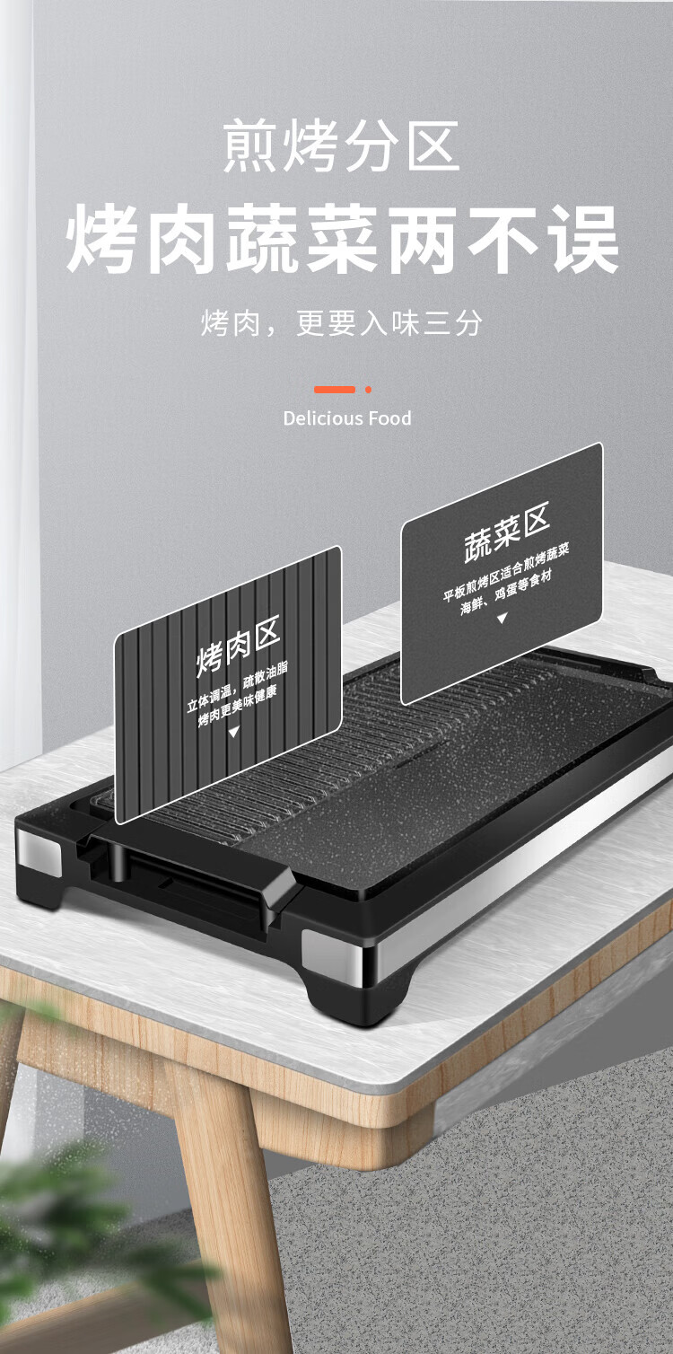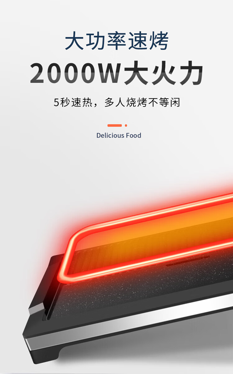 奥克斯(AUX) 烤肉锅烧烤炉电烤盘家用室内多功能料理锅不粘无烟韩式烤羊肉串机 加大号烤盘-大火力-可拆洗LA-155G