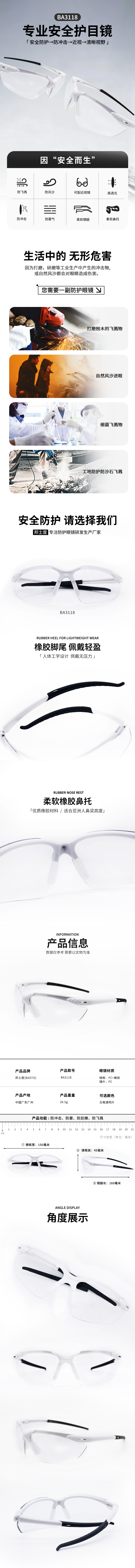 BASTO(邦士度) 防护眼镜防冲击劳保眼镜防飞溅防风沙防雾 BA3118