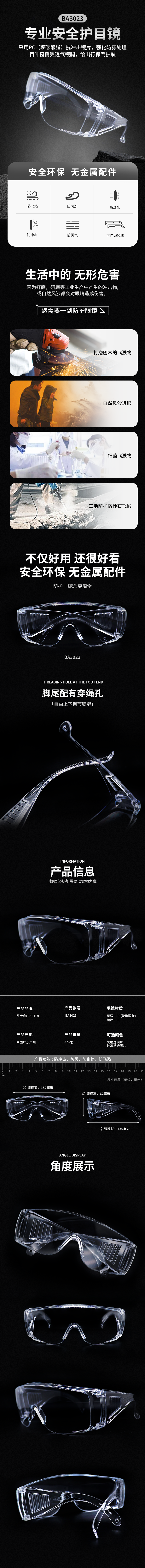 BASTO(邦士度) 防护眼镜防冲击劳保眼镜防飞溅防风沙防雾 BA3023