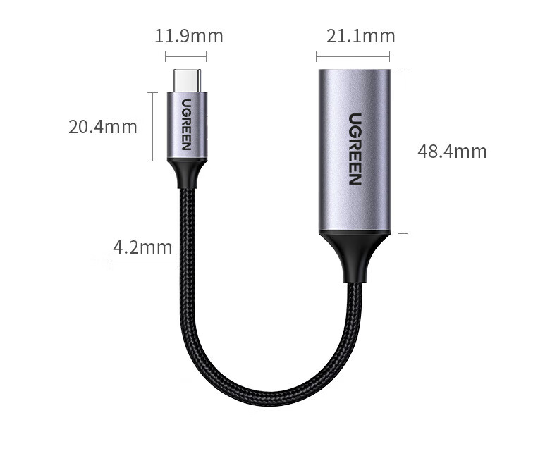 绿联USB 3.1Type-C转HDMI转换器10cm白色 40273