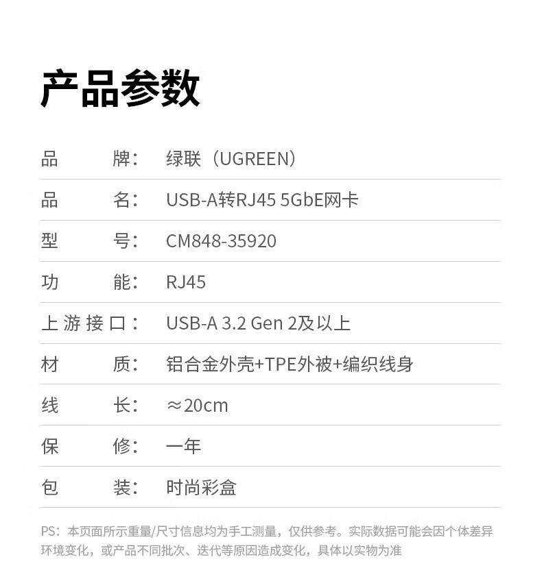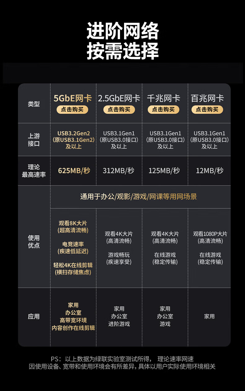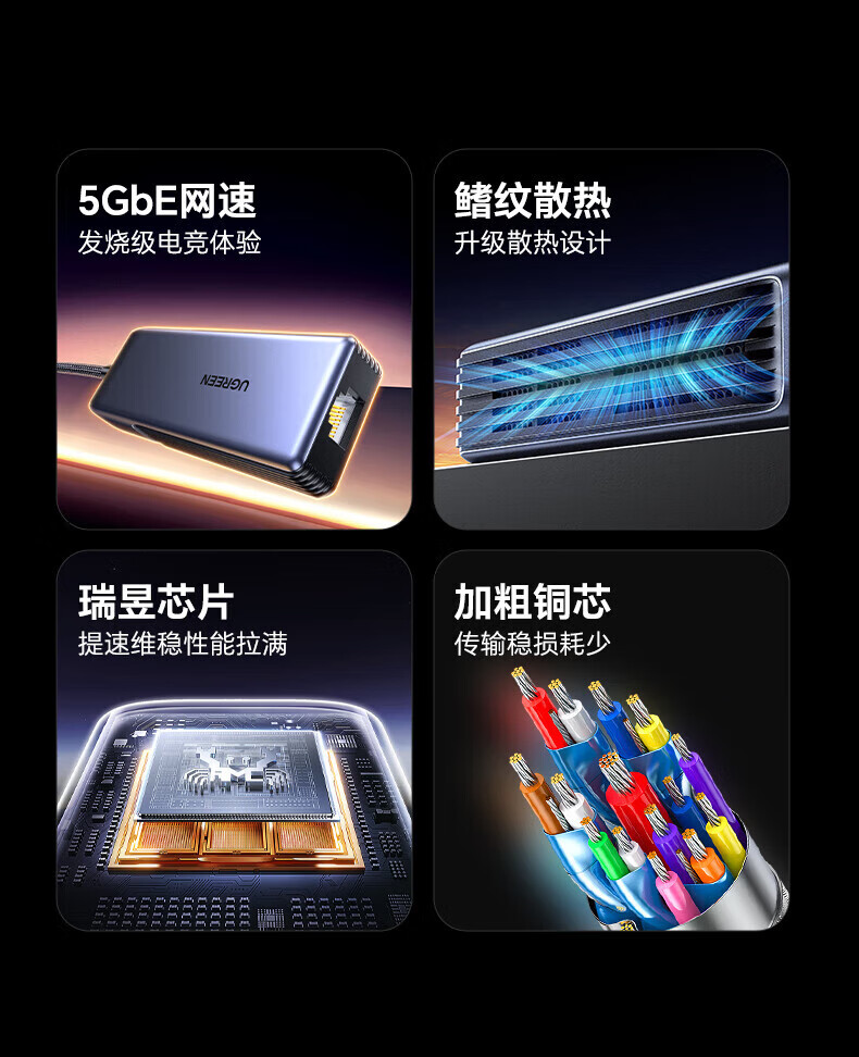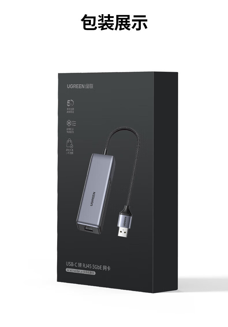 绿联Type-C转RJ45 5G有线网卡 深空灰 35921